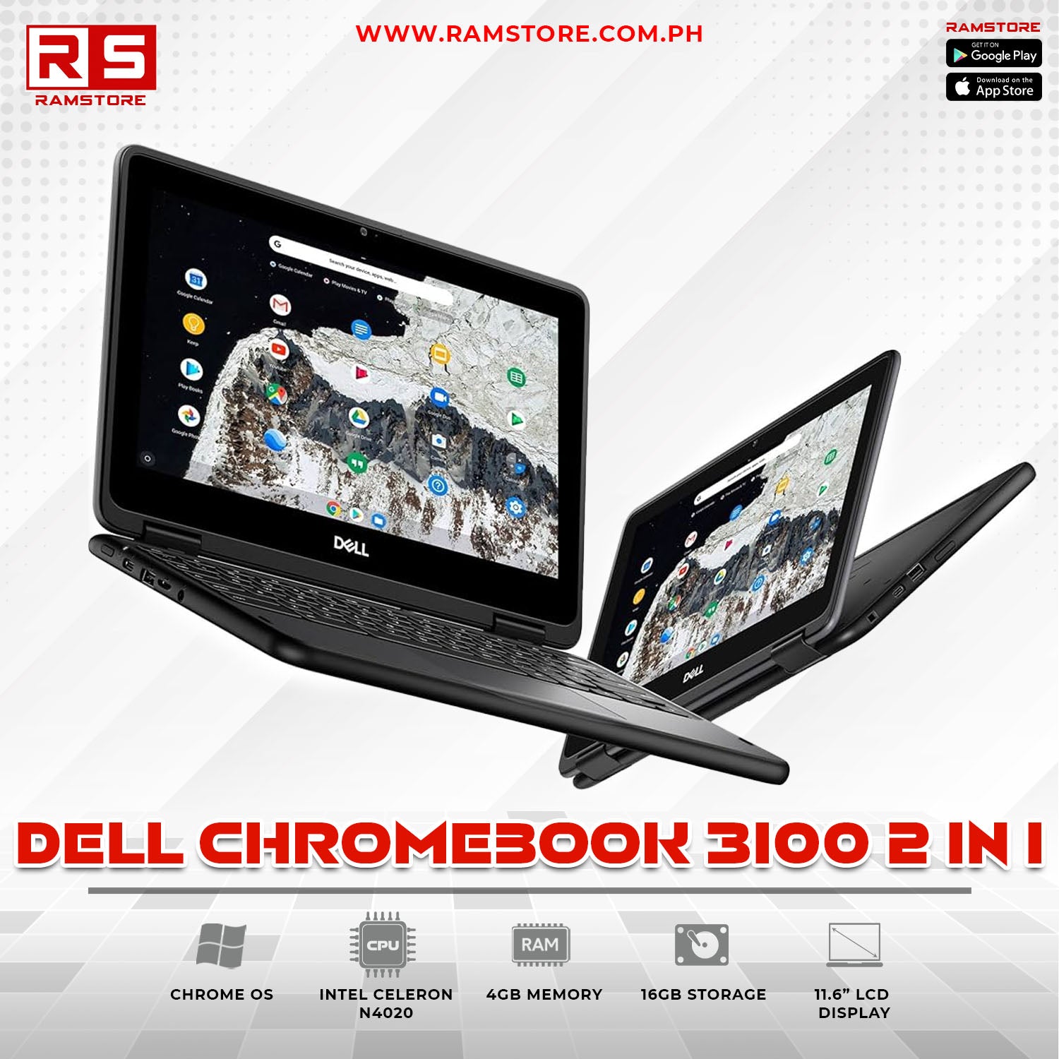 Dell Chromebook 3100 2-in-1 convertible laptop with touchscreen, Chrome OS, and durable design. Perfect for education and work. Shop at RAMSTORE.