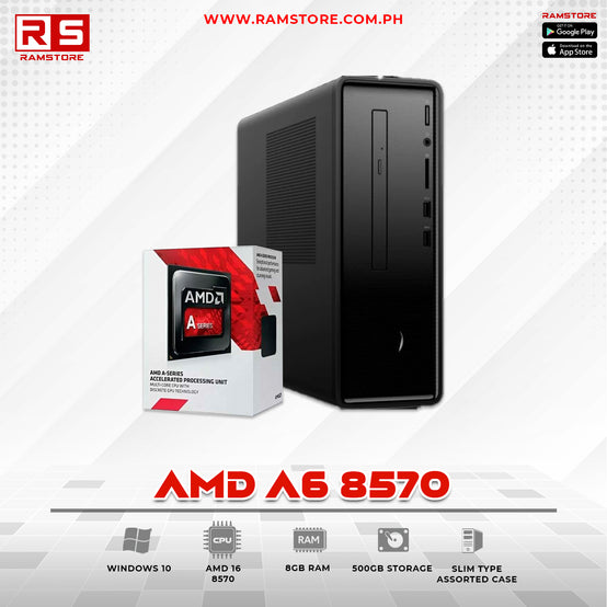 Experience reliable AMD computing with this PCZ desktop computer featuring AMD A6-8570 processor, 8GB RAM, and 500GB storage. Enhanced memory configuration for improved multitasking performance.